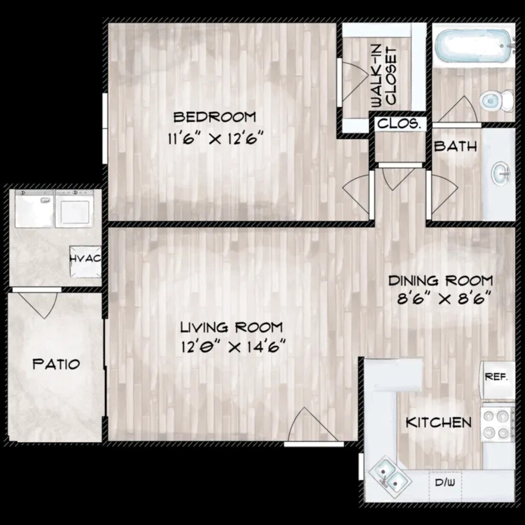 1 Bed, 1 Bath, 656 sq ftAvailable NowModel Gallery