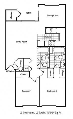 2x2 1056 SF - Floorplan 1 Apartment Unit: 231Apartment Model: 2x2 1056 SF2 Bedroom, 2 Bath, 1056 sq ftAvailable December 26, 2025