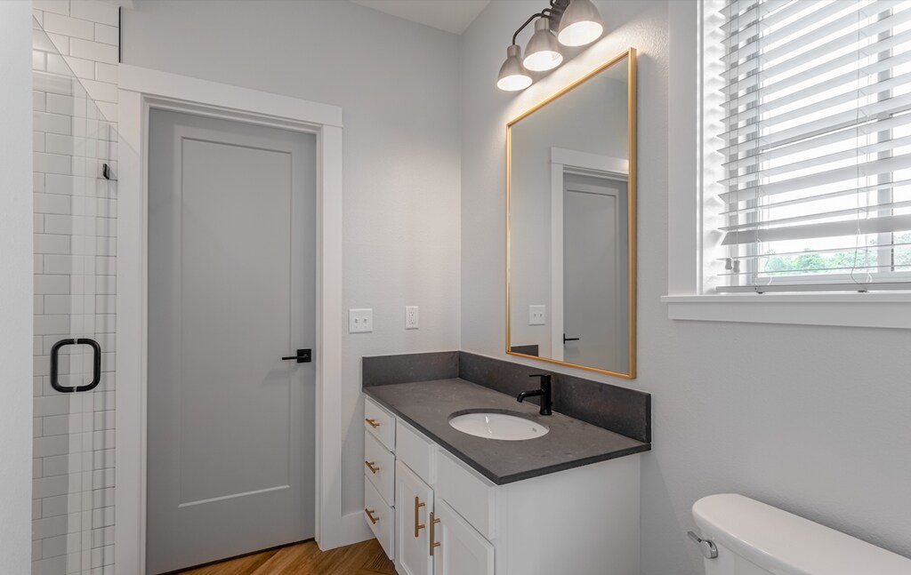 Step into luxury with our beautifully appointed 1-bedroom, 1-bath apartments, offering abundant square feet of elevated, thoughtfully crafted living space. Soaring 9-foot ceilings and expansive windows — including bay windows* in select homes — flood each residence with natural light from multiple sides, creating a warm, bright, and welcoming atmosphere from the moment you walk in. Upscale finishes define every corner, from elegant soapstone quartz countertops and tile-surround showers to striking herringbone-patterned flooring that brings timeless sophistication to every room. The open-concept layout is perfectly suited for both relaxing and entertaining, while in-unit full-size washers and dryers ensure effortless everyday convenience. Select residences also feature a lighted oversized closet that delivers both smart storage and standout style. Sleek and modern yet timelessly charming, these residences blend high-end design with effortless livability — offering the comfort, quality, and style you deserve.