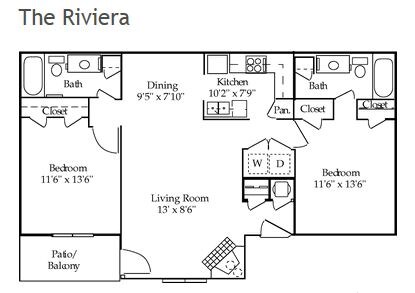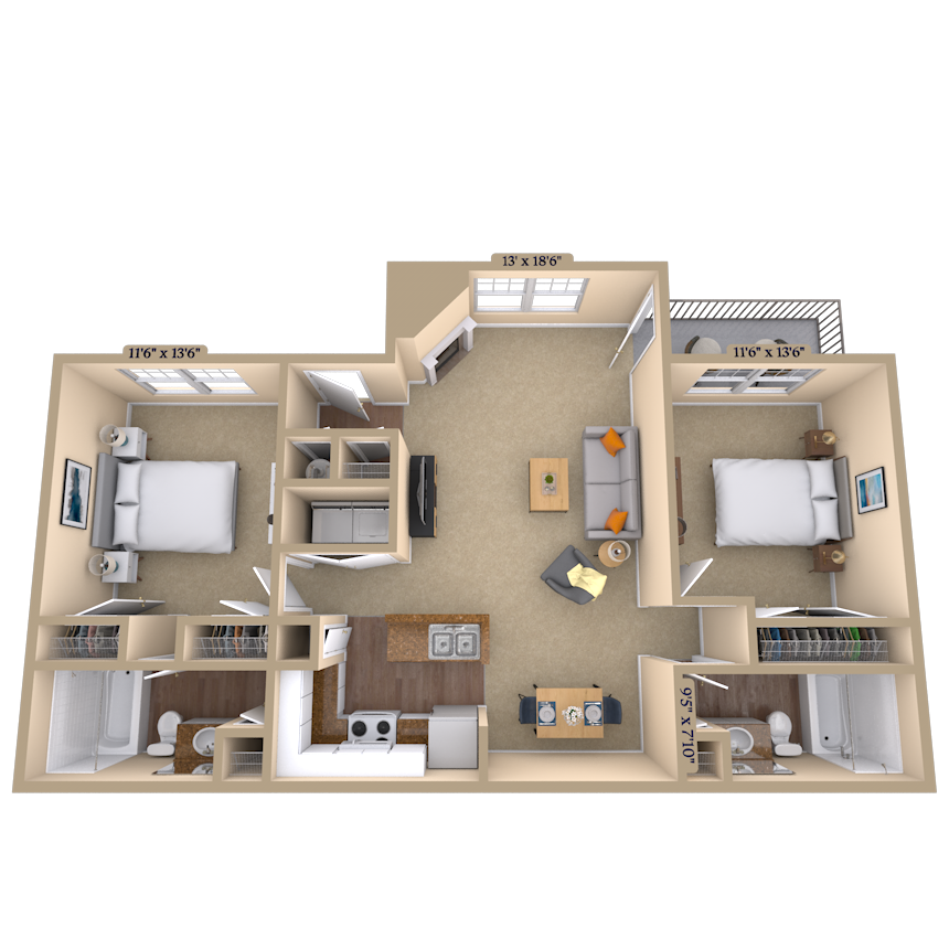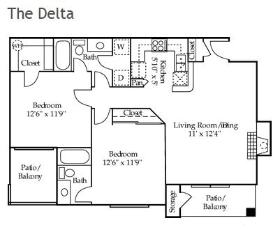 1BR 1BA (790 SF) - Floorplan 2 2 Bedrooms