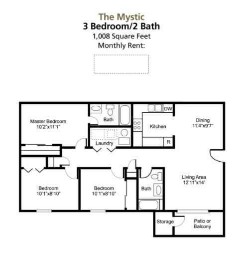 Apartment Model: 3x2$1,3003 Bedroom, 2 Bath, 1008 sq ftUnavailable![]()