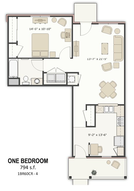 1 Bed, 1 Bath, 794 sq ftModel Gallery