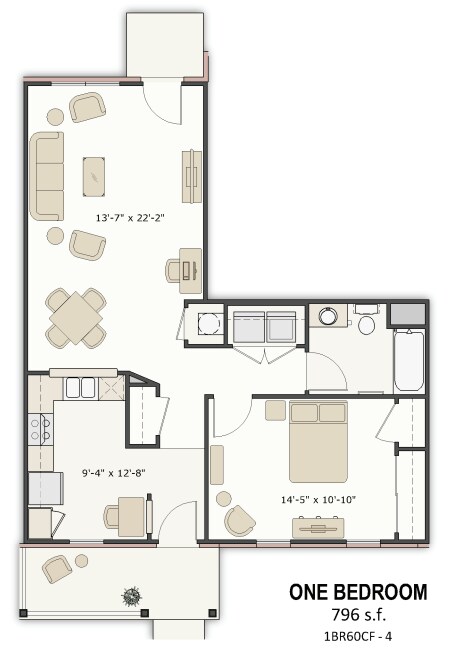1 Bed, 1 Bath, 796 sq ftModel Gallery