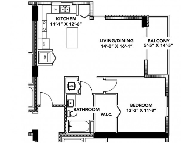 Model AX - Floorplan 1 Apartment Unit: 1-0212Apartment Model: Model AXFrom $2,7491 Bedroom, 1 Bath, 725 sq ftAvailable NowModel A