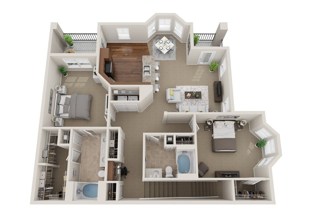 Apartment Model: 2BR 2BA (1615 SF)$1,7602 Bedroom, 2 Bath, 1615 sq ftUnavailable![]() - 2BR 2BA (1615 SF) - Floorplan 1