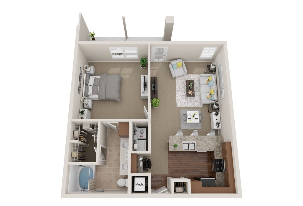 Apartment Model: 1BR 1BA (910 SF)$1,4101 Bedroom, 1 Bath, 910 sq ftUnavailable![]() - 1BR 1BA (910 SF) - Floorplan 1