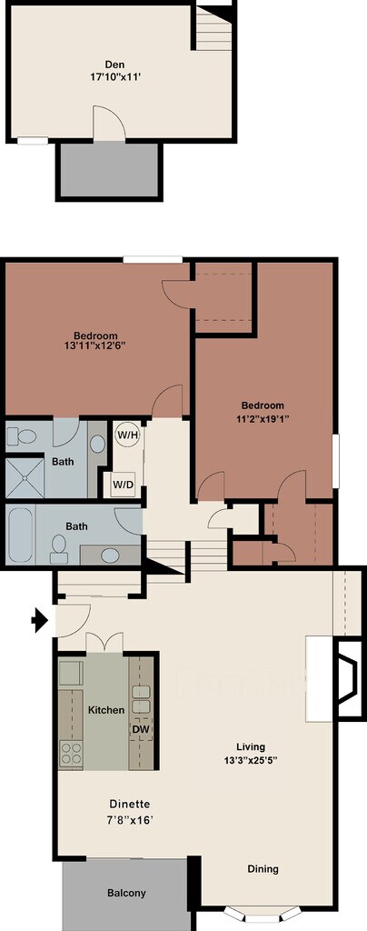 S + DEN WEST - Floorplan 1 2 Bedrooms