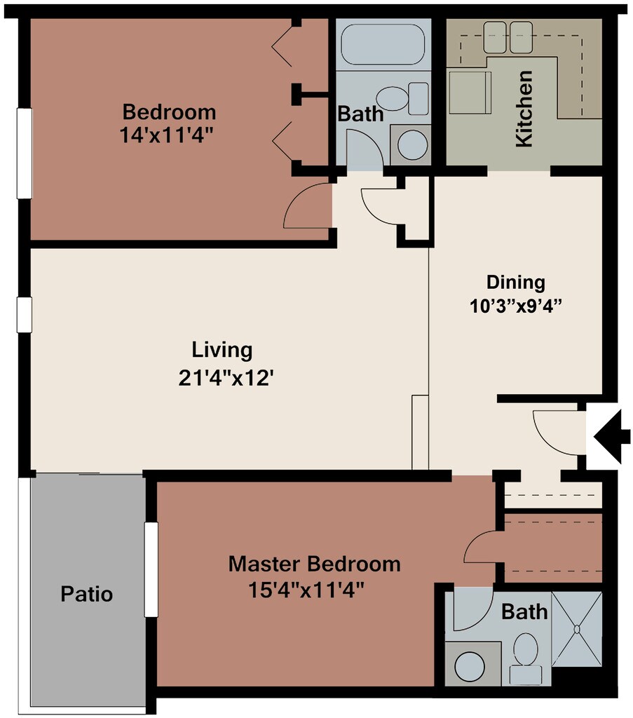2 Beds, 2 Baths, 1035-1060 sq ftAvailable NowModel Gallery