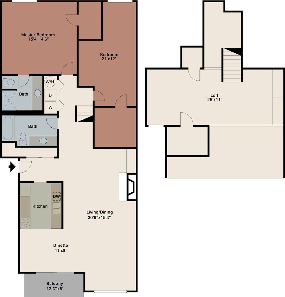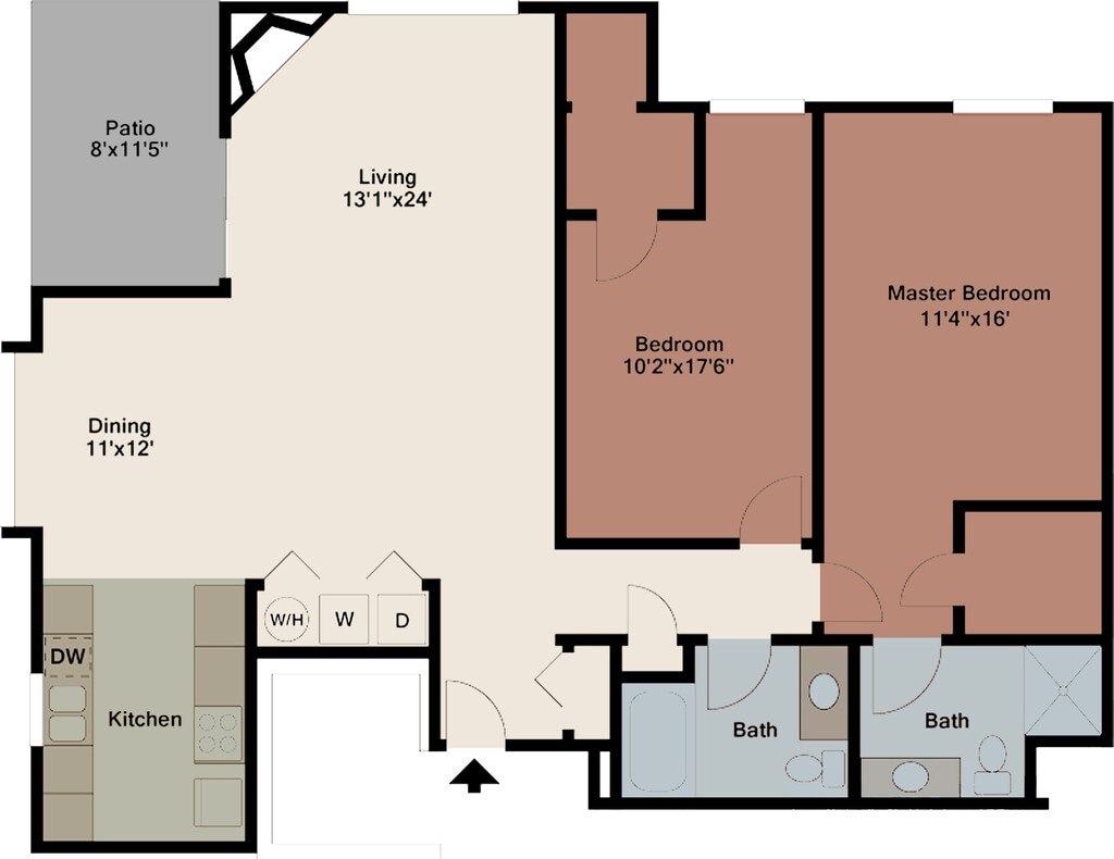 2 Beds, 2 Baths, 1300 sq ftAvailable NowModel Gallery