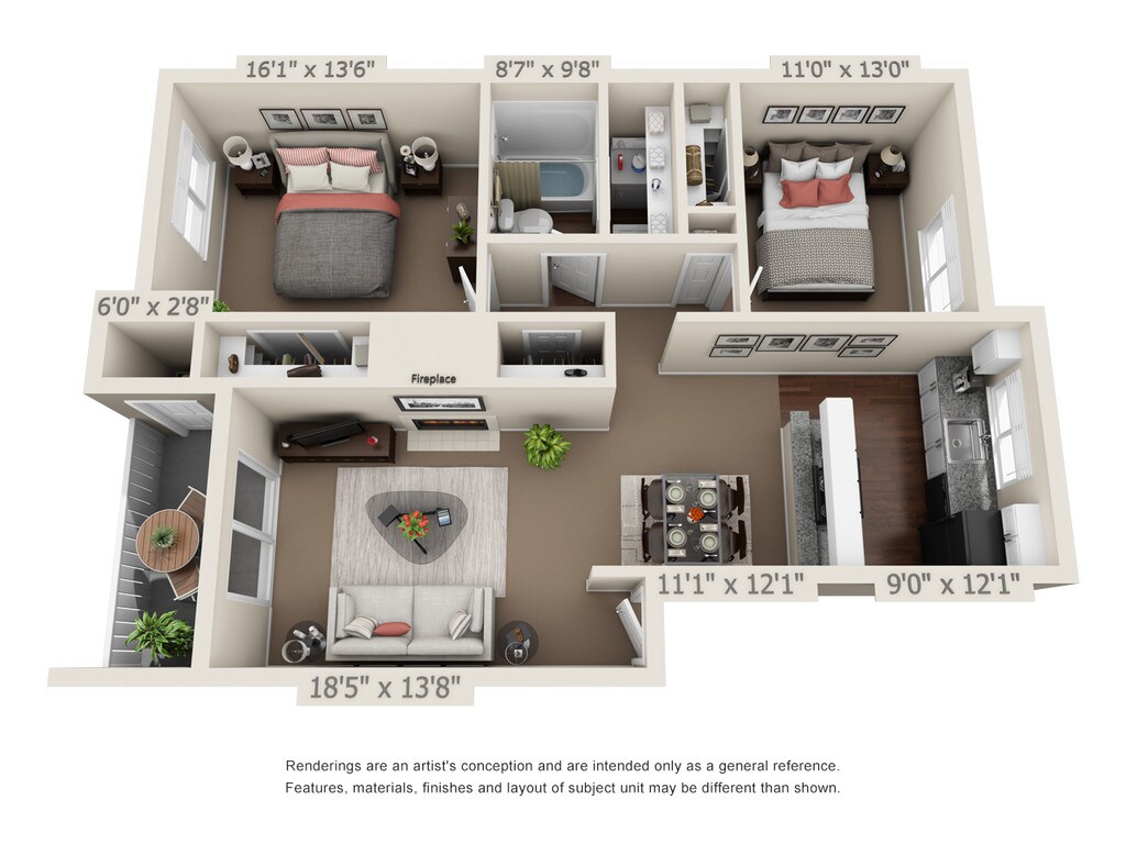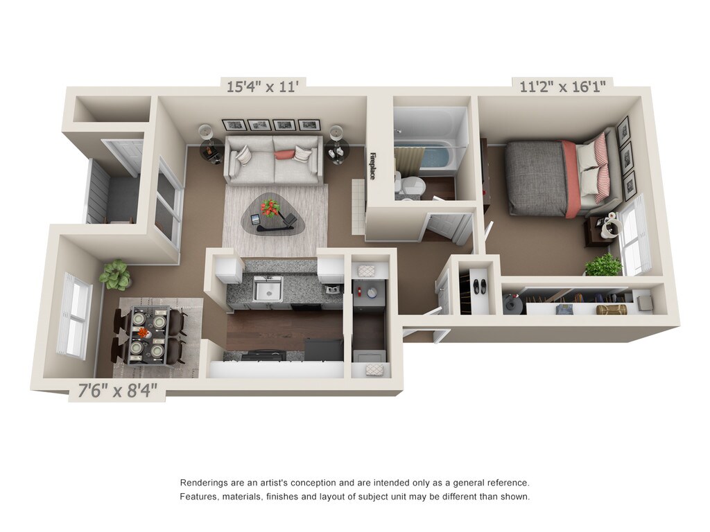 2 Beds, 1 Bath, 860 sq ftModel Gallery