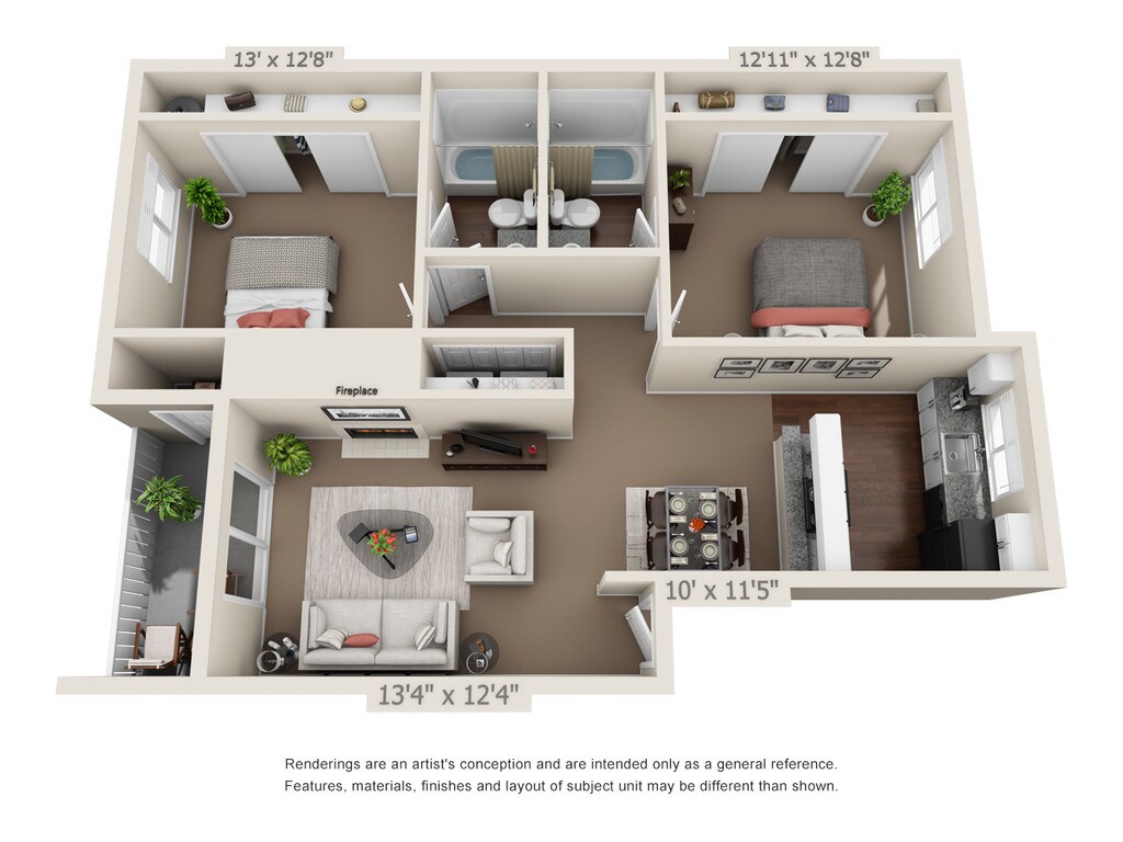 2 Beds, 2 Baths, 970 sq ftModel Gallery