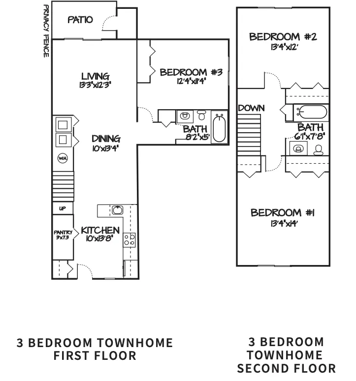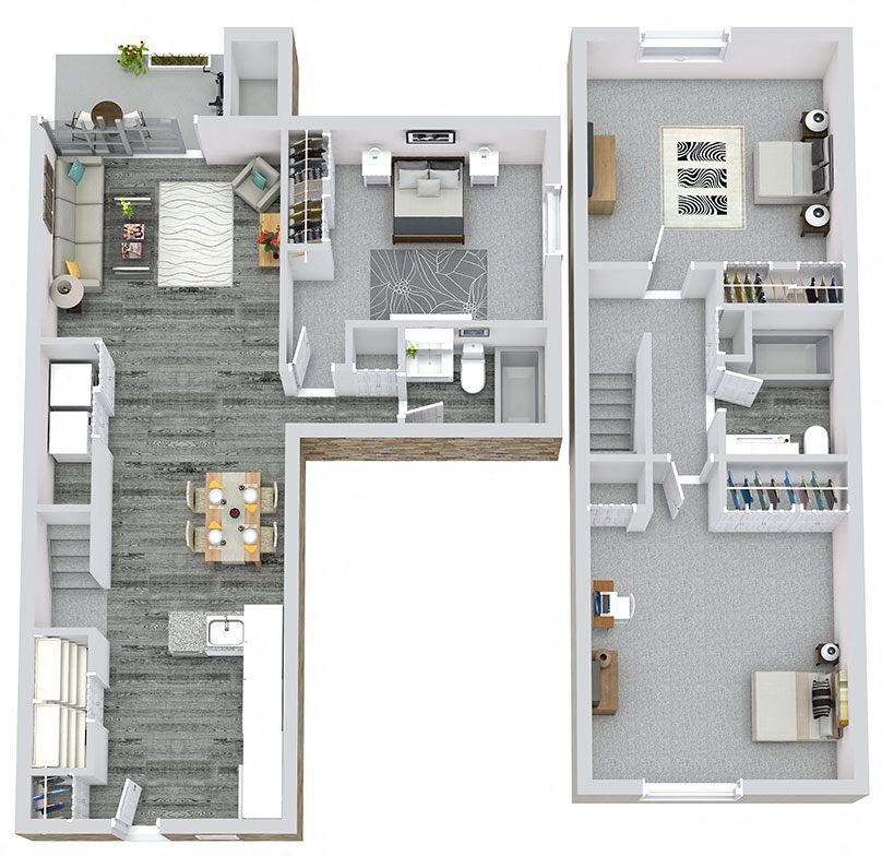 1 Bed | 1.5 Baths Townhome - Floorplan 2 2 Bedrooms