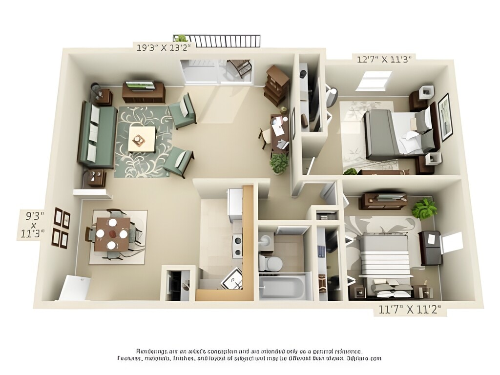 Apartment Model: Two Bedroom DeluxeFrom $1,3402 Bedroom, 1 Bath, 1130 sq ftAvailable NowTwo Bedroom Deluxe - Floorplan 1 Two Bedroom Deluxe - Floorplan 2