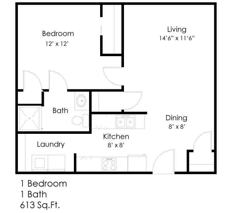 Apartment Model: One Bedroom$9351 Bedroom, 1 Bath, 613 sq ftAvailable NowOne Bedroom - Floorplan 1 2 Bedrooms
