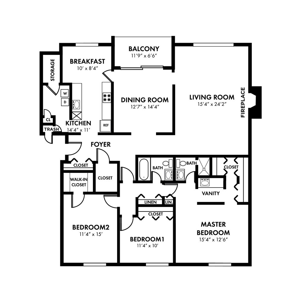Apartment Model: One Bedroom - 935 sqftFrom $1,4051 Bedroom, 1 Bath, 935 sq ftAvailable NowFloorplansPhotos![]()