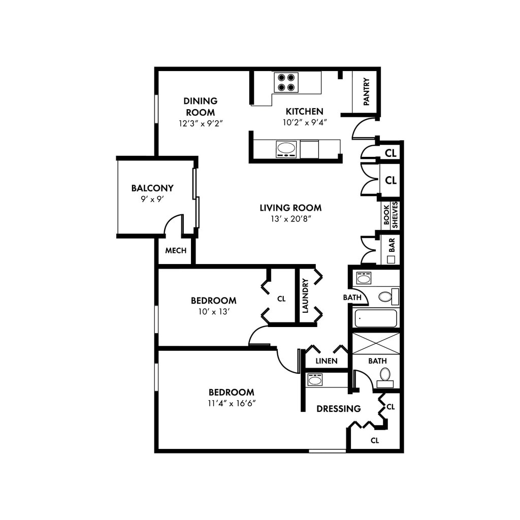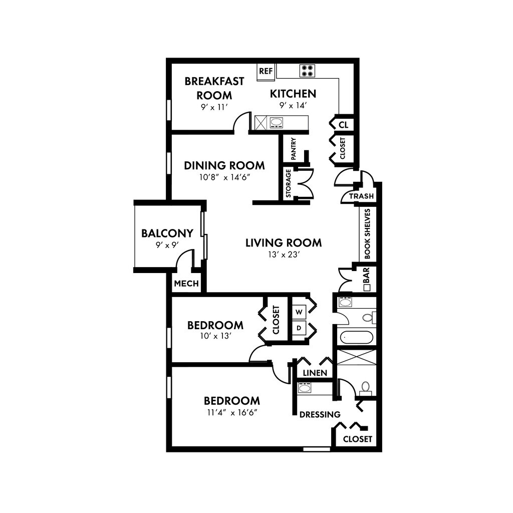 One Bedroom - 935 sqft - Floorplan 16 ![]()