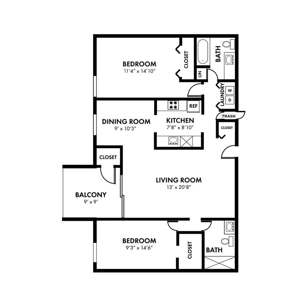 One Bedroom - 935 sqft - Floorplan 14 ![]()