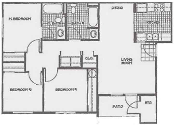 2 Bedroom, 1 Bath - Floorplan 2 3 Bedrooms