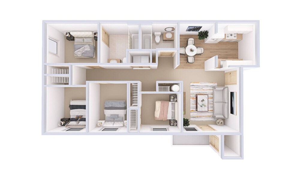 3 Bedroom, 2 Bath - Floorplan 2 Apartment Unit: A106Apartment Model: 3 Bedroom, 2 Bath$1,5733 Bedroom, 2 Bath, 1088 sq ftAvailable November 7, 20254 Bedrooms