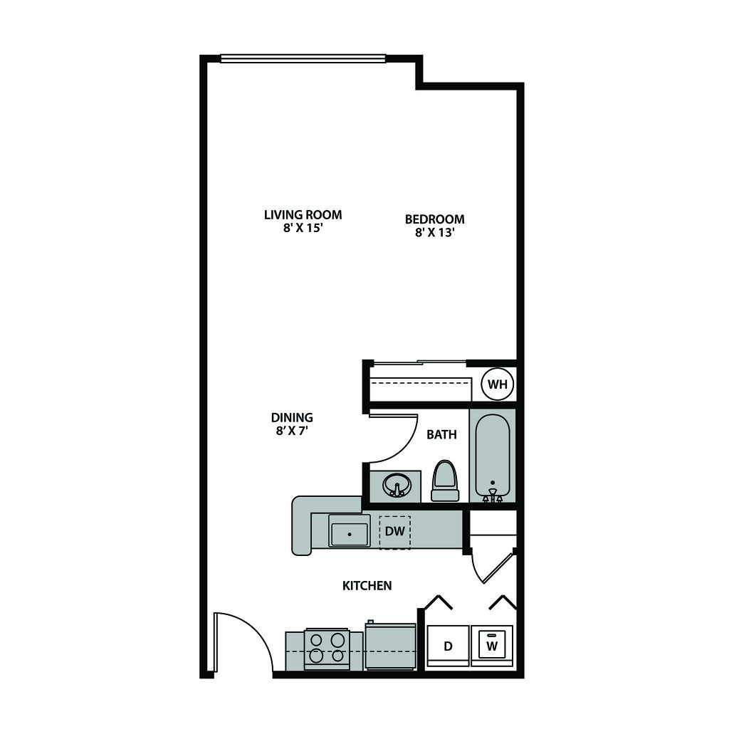 Studio, 1 Bath, 525 sq ftAvailable NowModel Gallery