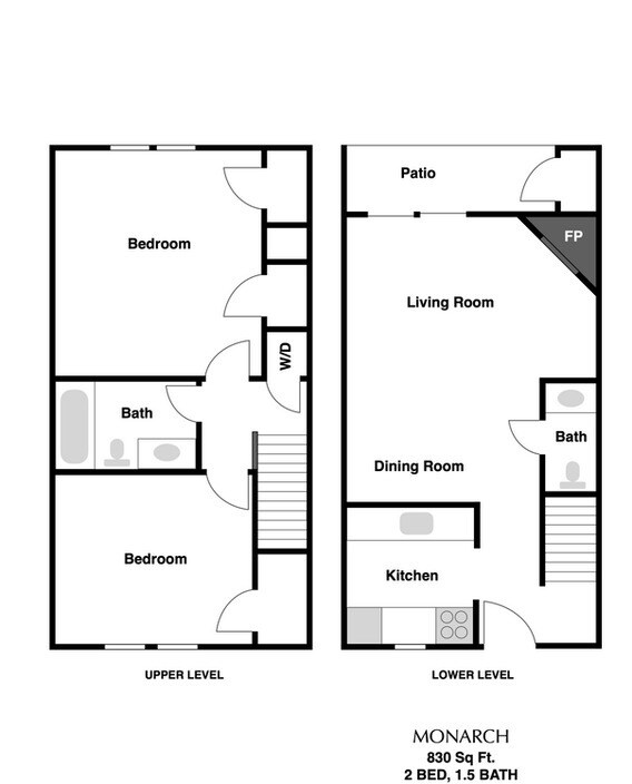 2 Beds, 1.5 Baths, 830 sq ftModel Gallery