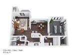 1 Bed, 1 Bath, 672 sq ftModel Gallery