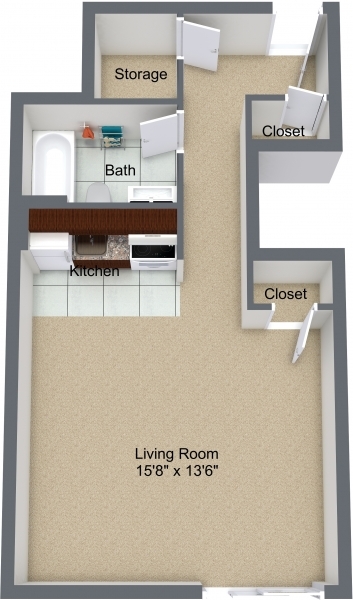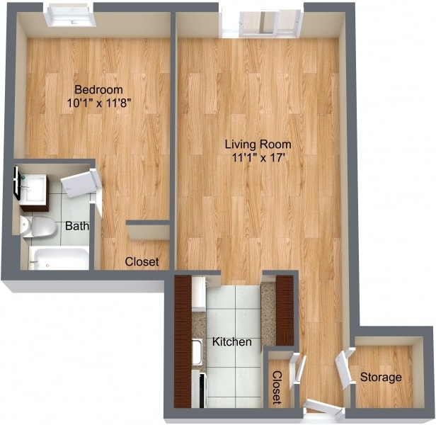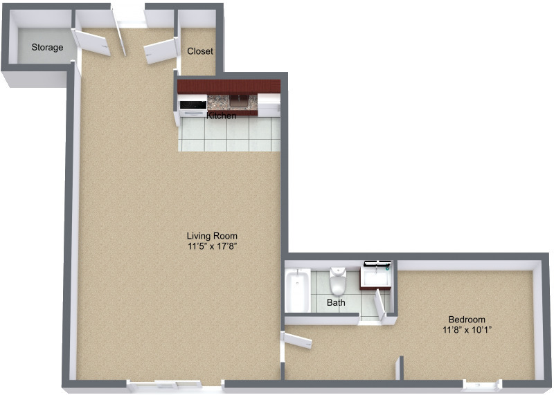 Studio A - Floorplan 6 Apartment Unit: 301Apartment Model: Studio A$850Studio, 1 Bath, 378 sq ftAvailable Now1 Bedroom