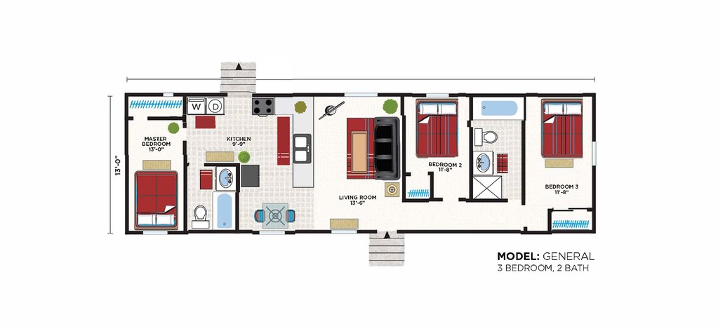 3 Beds, 1 Bath, 800-900 sq ftModel Gallery