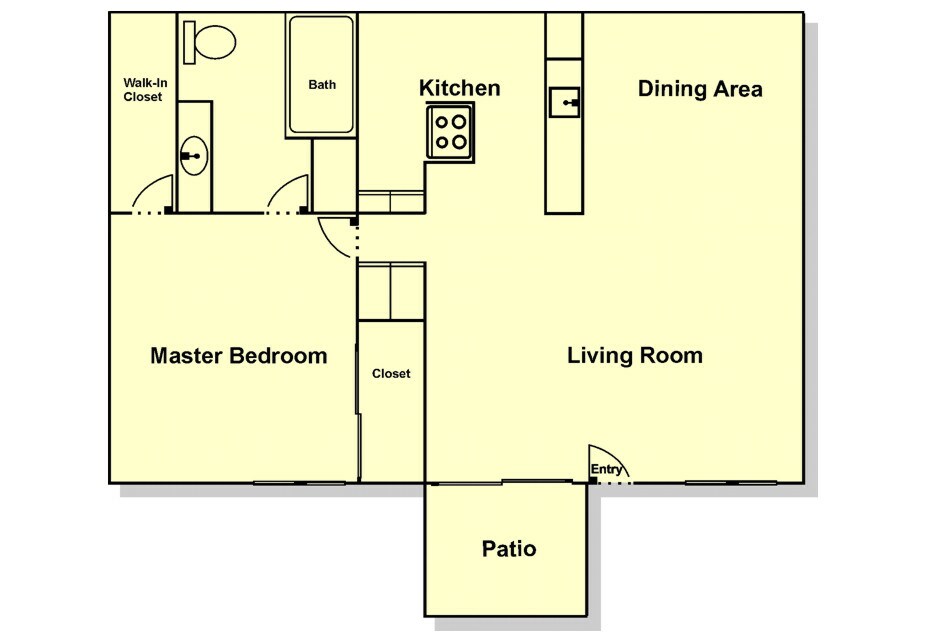 1 Bedroom, 1 Bath w/ Patio - Floorplan 1 1 Bedroom, 1 Bath w/ Balcony