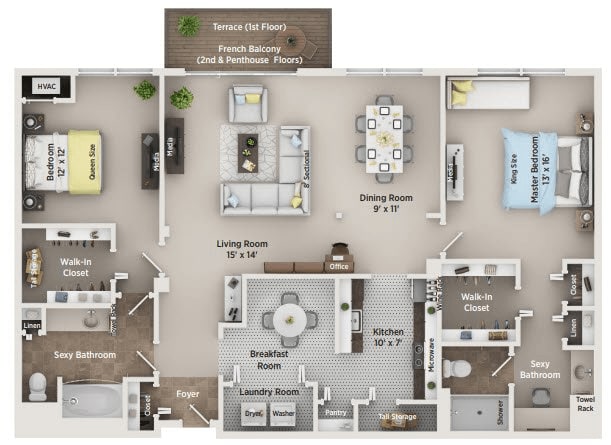Apartment Model: A3From $1,5261 Bedroom, 1.5 Bath, 1040 sq ftAvailable Now![]()