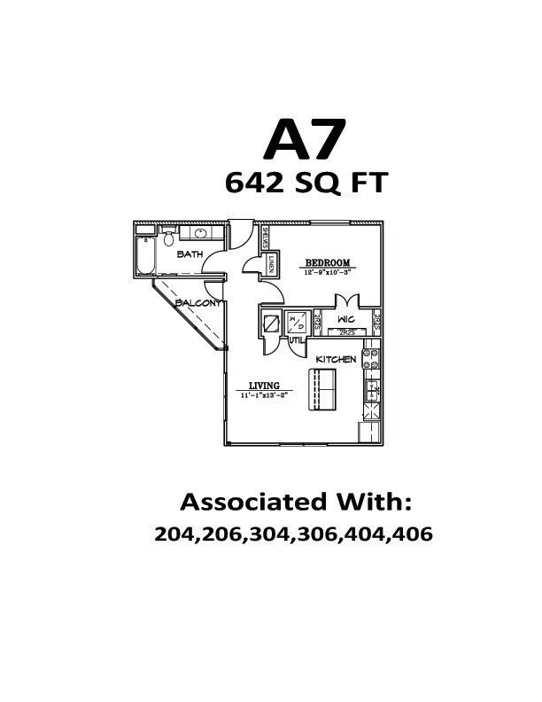 Apartment Model: A7-A1 Bedroom, 1 Bath, 642 sq ftUnavailable![]()