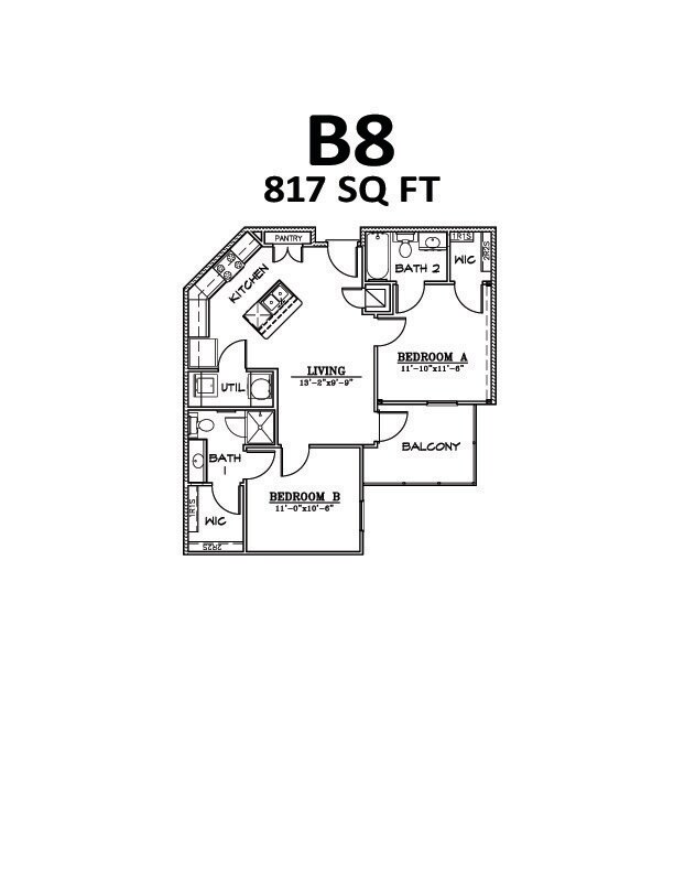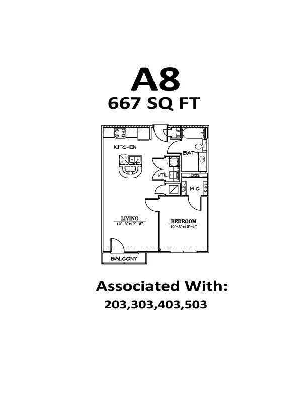 Apartment Model: A8-A1 Bedroom, 1 Bath, 667 sq ftUnavailable![]()