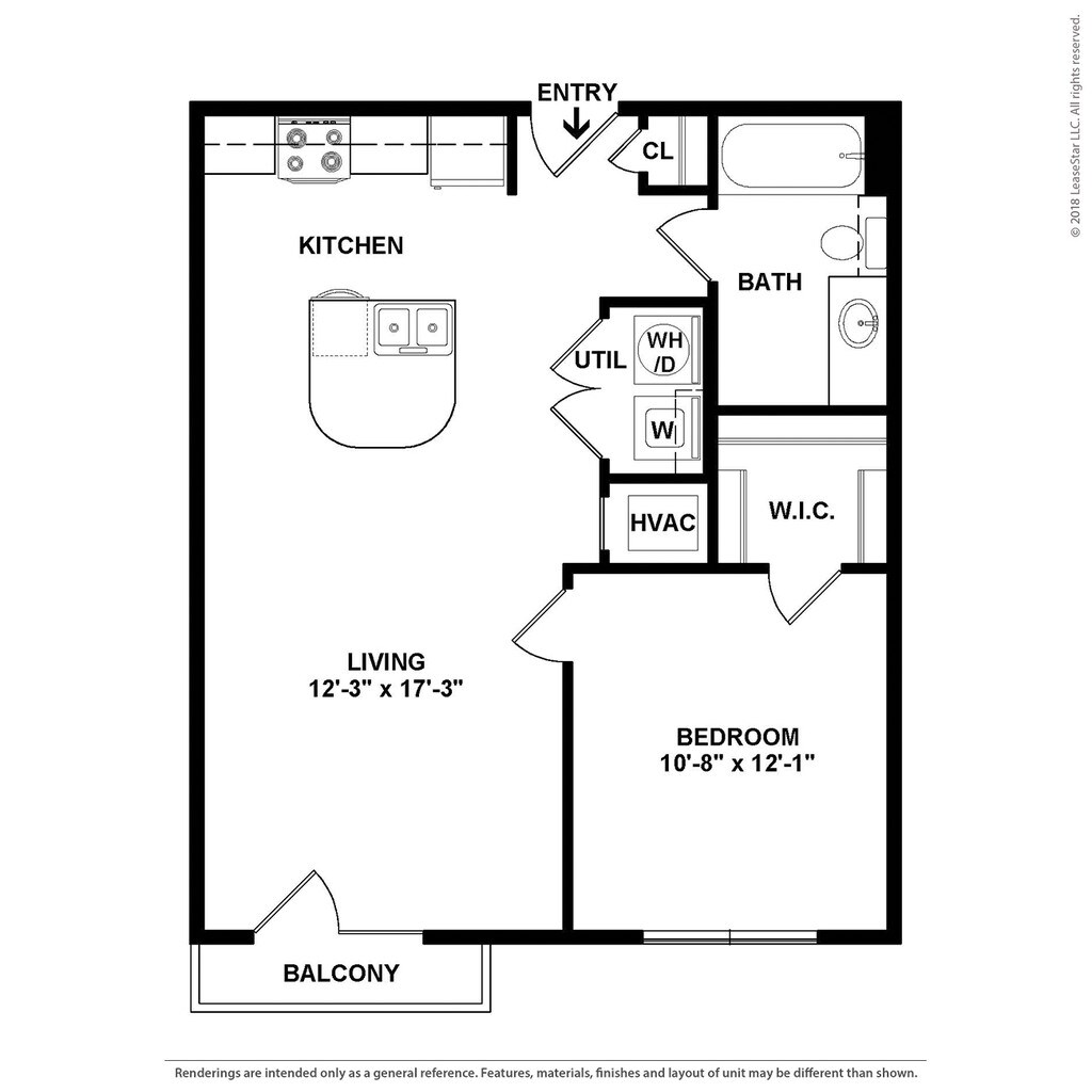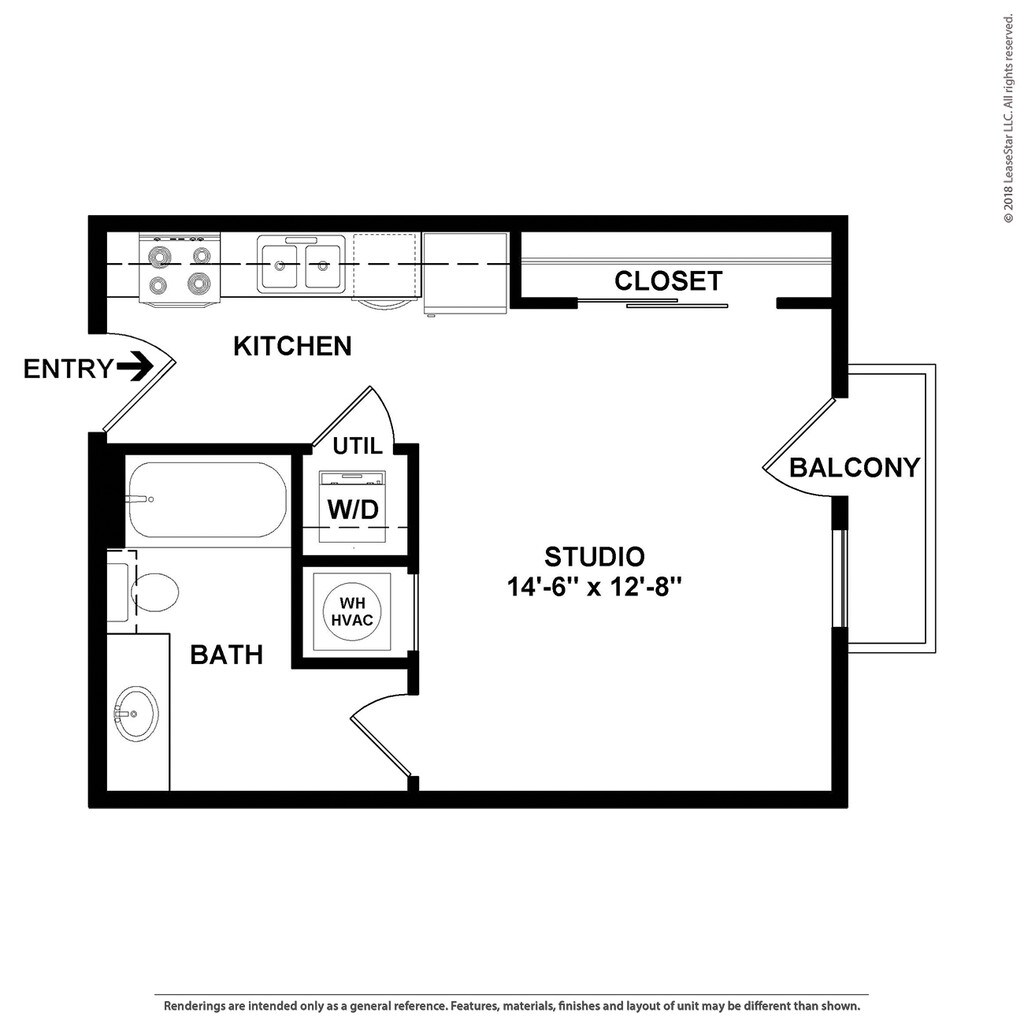 Apartment Model: E1Studio, 1 Bath, 396 sq ftUnavailable![]()