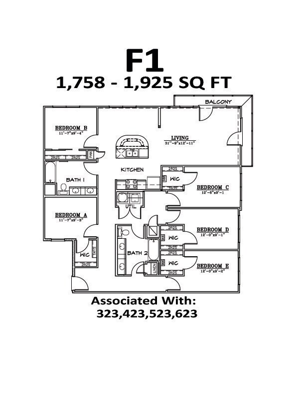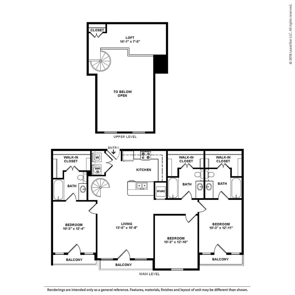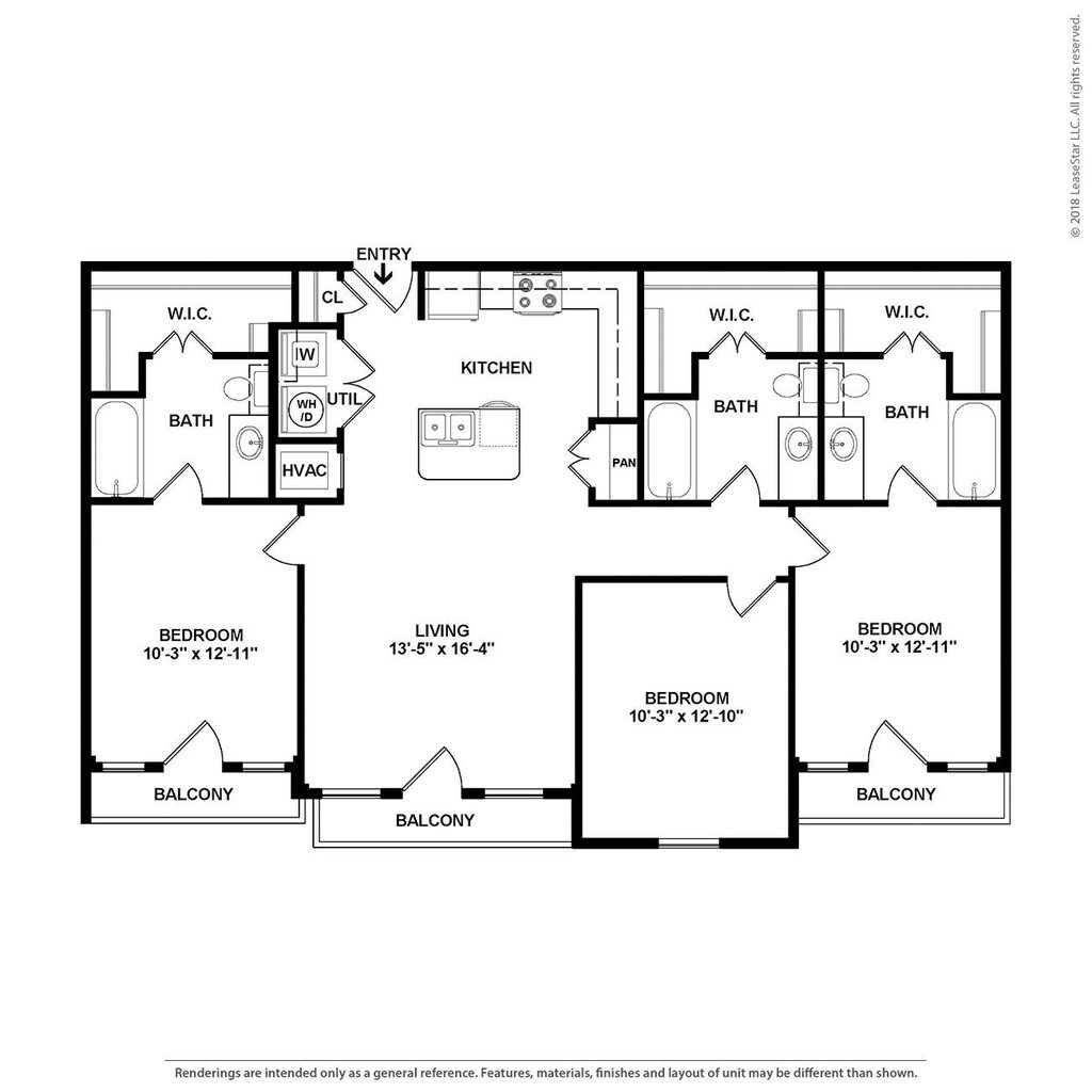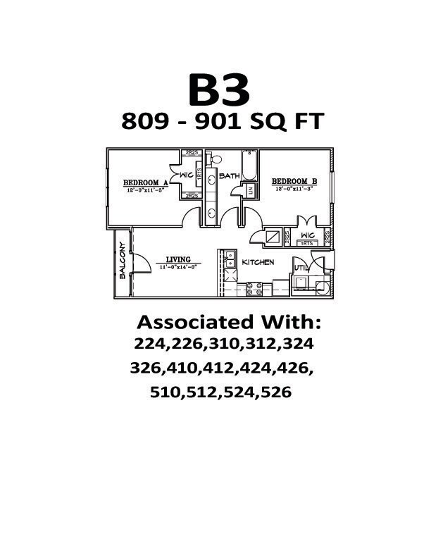 Apartment Model: A3-A1 Bedroom, 1 Bath, 623 sq ftUnavailable![]()