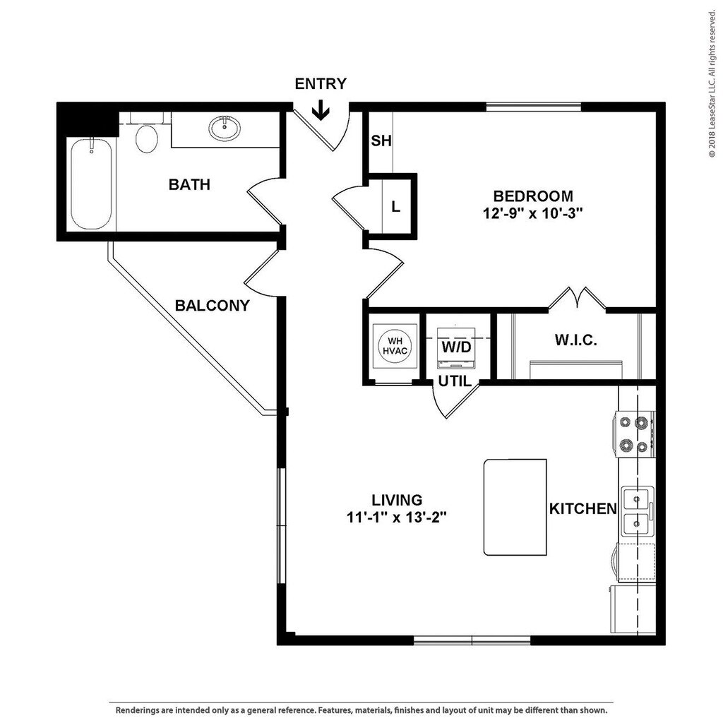 Studio, 1 Bath, 517 sq ftLargest StudioThis is the largest Studio at this PropertyModel Gallery