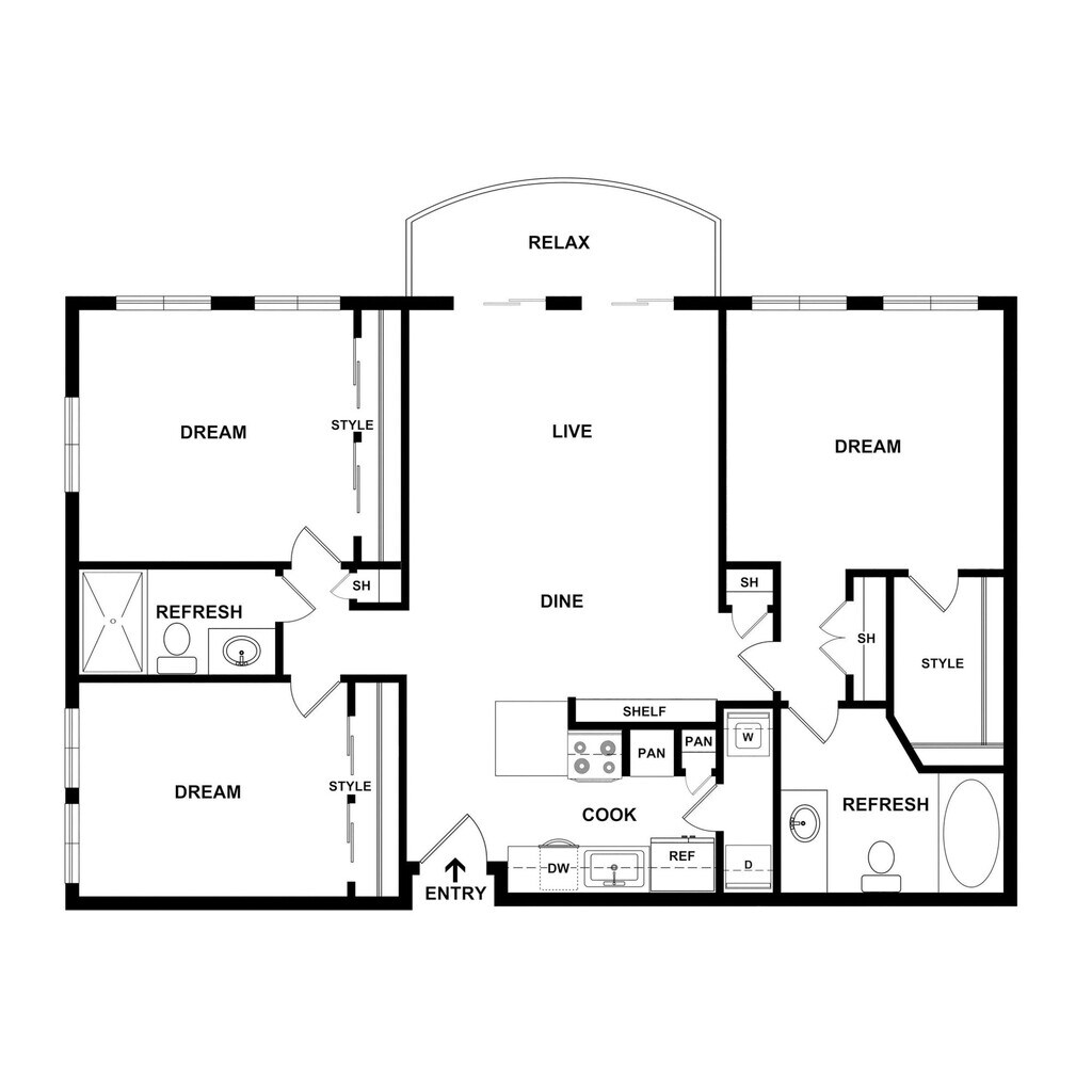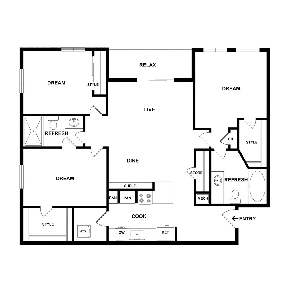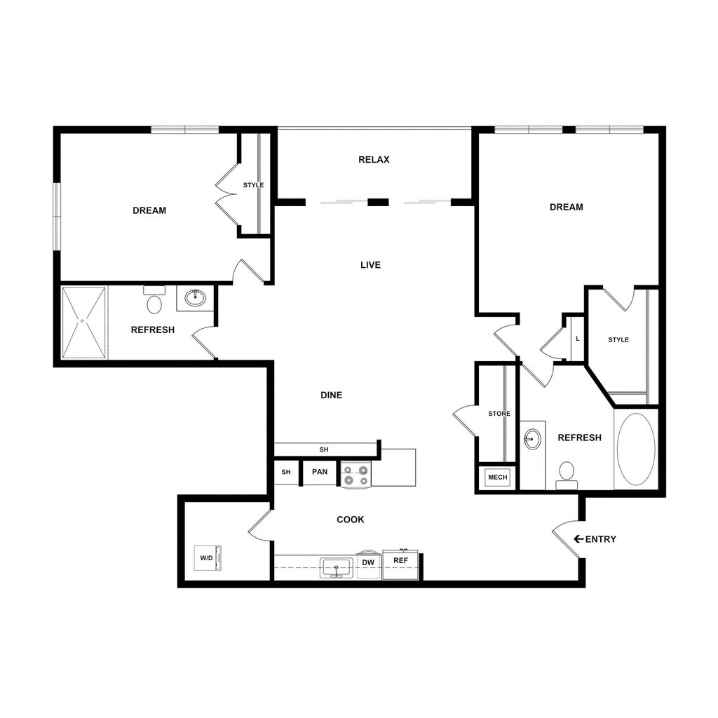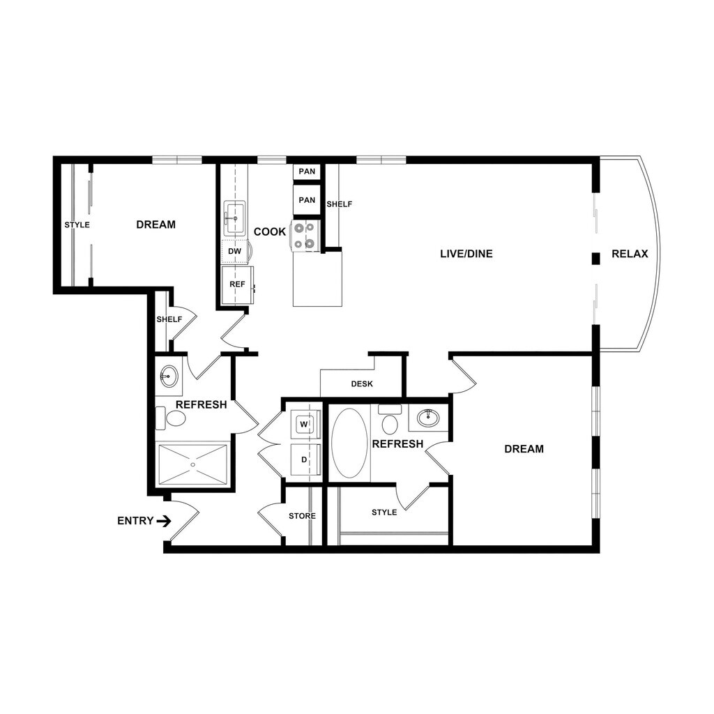 1 Bed, 1 Bath, 843 sq ftAvailable NowModel Gallery
