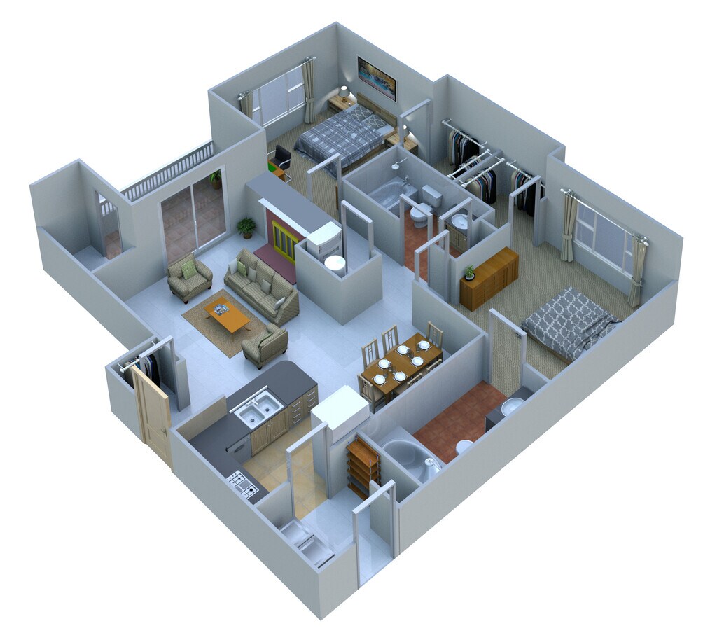 2 Beds, 2 Baths, 995 sq ftModel Gallery