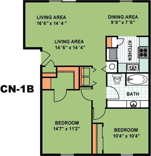 Two Bedroom One Bathroom (CN1B) - Floorplan 1 Two Bedroom One Bathroom (CN1)