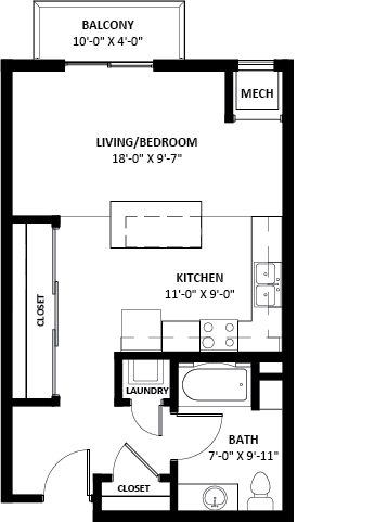 Studio, 1 Bath, 844 sq ftLargest StudioThis is the largest Studio at this PropertyModel Gallery