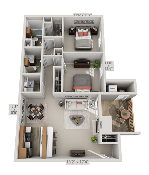 Apartment Model: Azalea DeluxeFrom $1,8271 Bedroom, 1 Bath, 652 sq ftAvailable NowFloorplansPhotos![]()