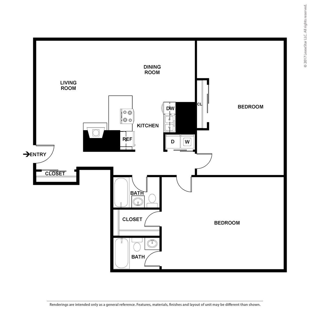 2 Beds, 2 Baths, 1075 sq ftModel Gallery
