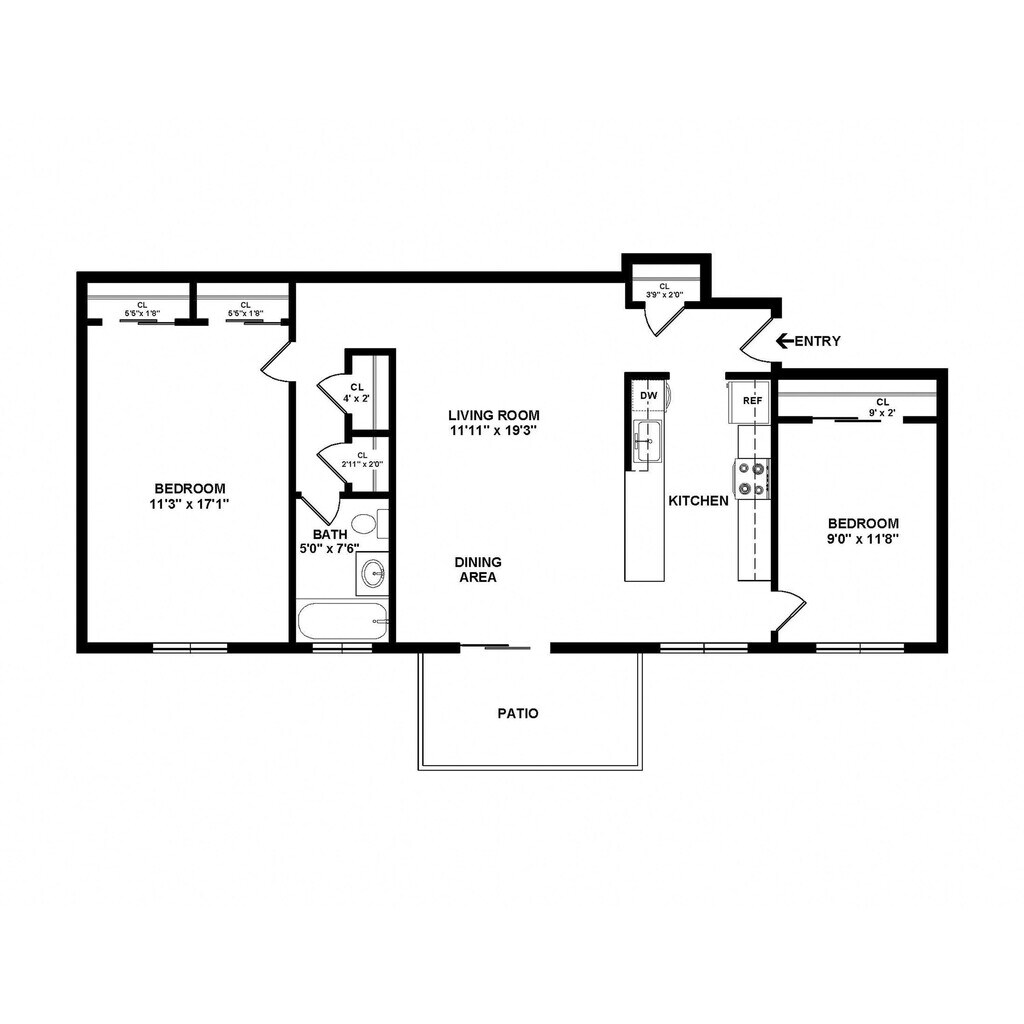 A5 - Floorplan 2 Apartment Unit: 211HApartment Model: A5$2,6251 Bedroom, 1 Bath, 725 sq ftAvailable NowFloorplan A9