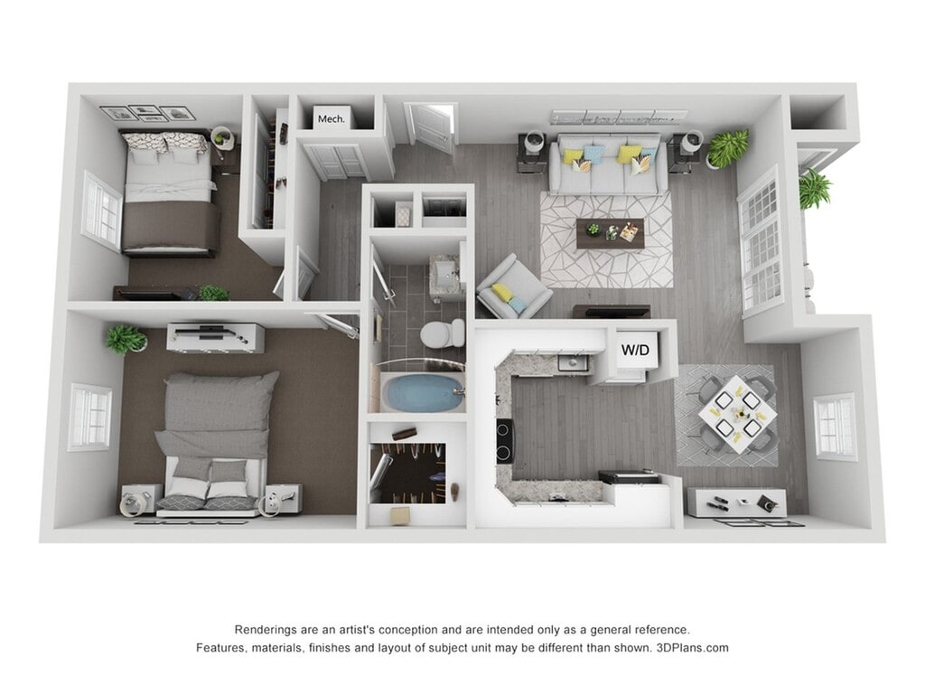 2 Beds, 2 Baths, 970 sq ftAvailable NowLargest 2 BedroomThis is the largest 2 Bedroom at this PropertyModel Gallery