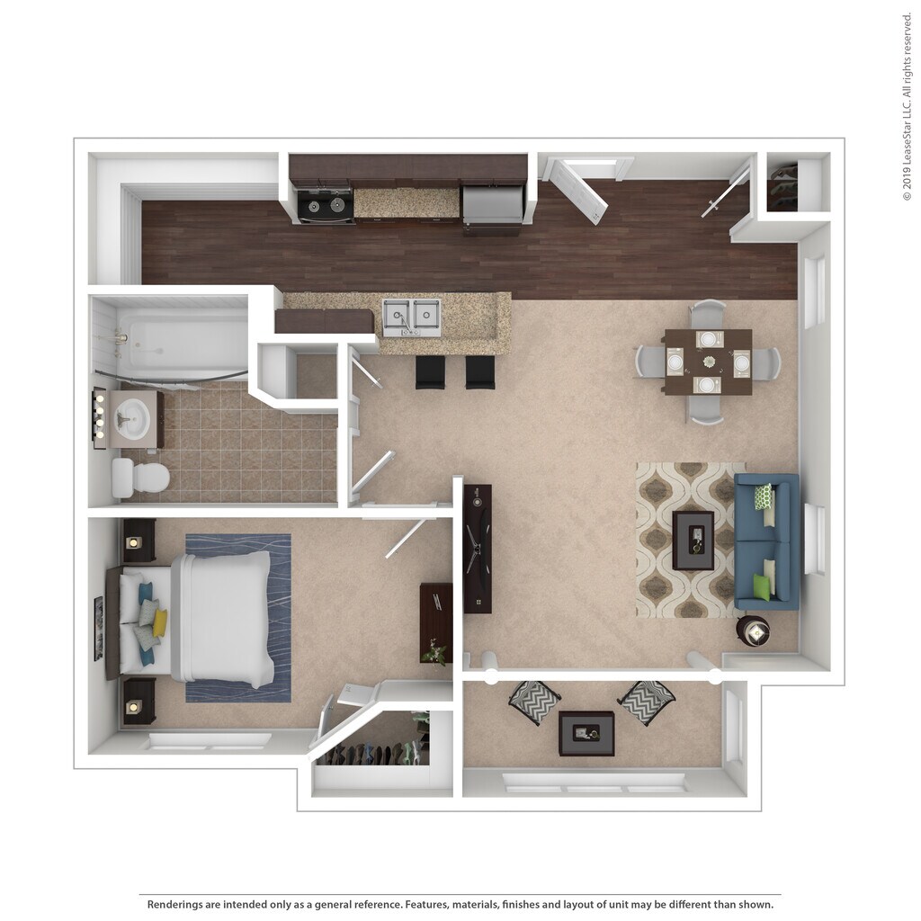Apartment Model: 1x1 - EdwardFrom $1,1851 Bedroom, 1 Bath, 700 sq ftAvailable Now![]()