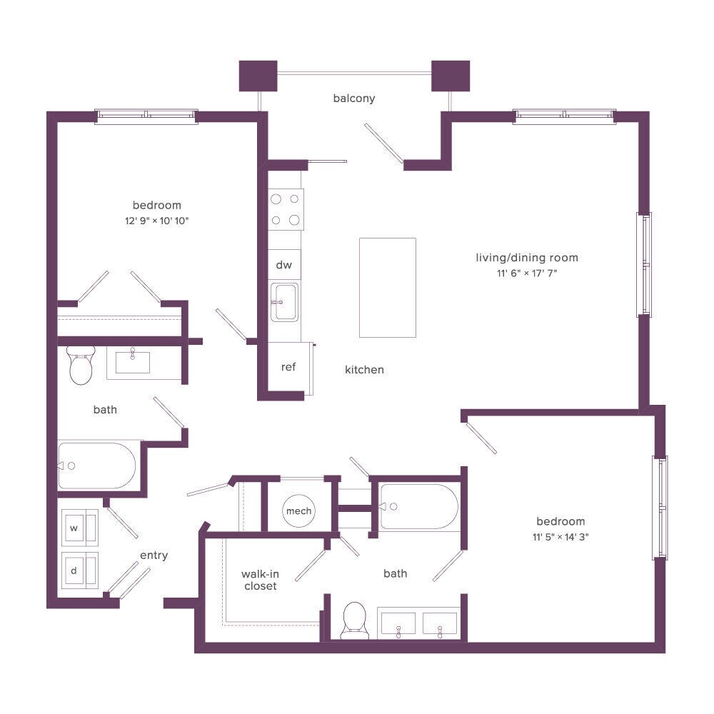 Apartment Model: A2From $1,6251 Bedroom, 1 Bath, 863 sq ftAvailable NowFloor plans are artist's rendering. All dimensions are approximate. Actual product and specifications may vary in dimension or detail. Not all features are available in every rental home. Prices and availability are subject to change. Base rent is based on monthly frequency. Additional fees may apply, such as but not limited to package delivery, trash, water, amenities, etc. Deposits vary. Please see a representative for details.