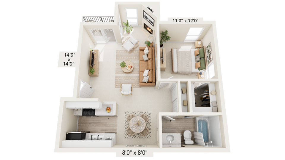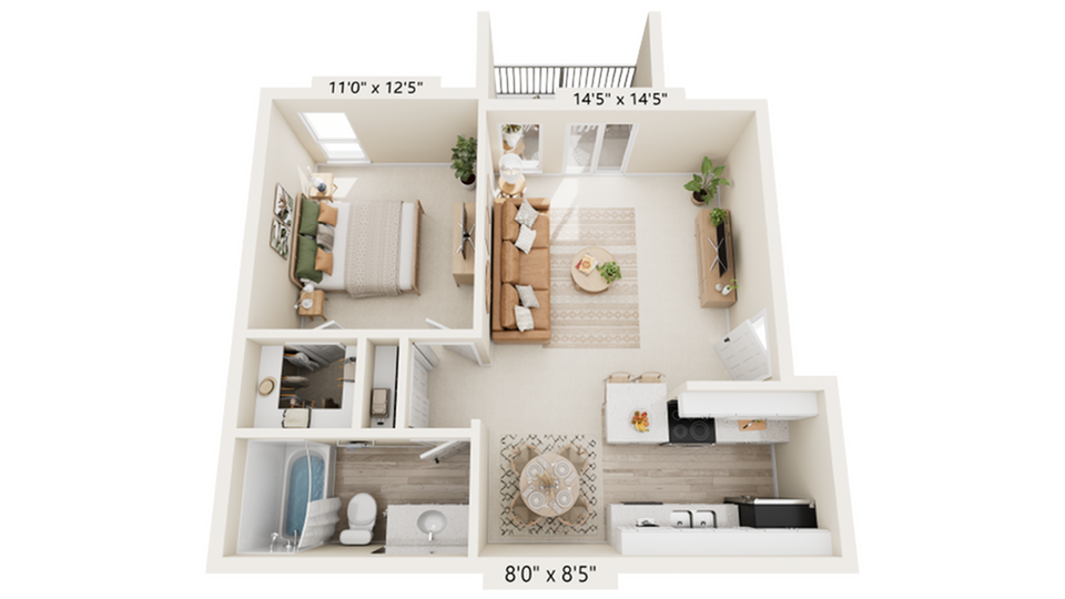 1 Bed, 1 Bath, 700 sq ftAvailable NowModel Gallery
