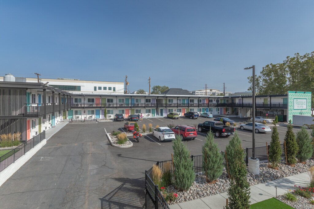 Renova is walking distance to nightlife, the Truckee River, shopping, fantastic restaurants, and easy access to the freeway. We are close to the shuttle service for Panasonic and Tesla as well as RTC bus stops. We are a little unconventional as we offer a large community kitchen with multiple ovens, sinks and dining areas as well as a lounge area and poker table. We are a gated community with all utilities included as well as cable and Wi-Fi. We have an onsite laundry facility as well as onsite maintenance and 24-hour surveillance.