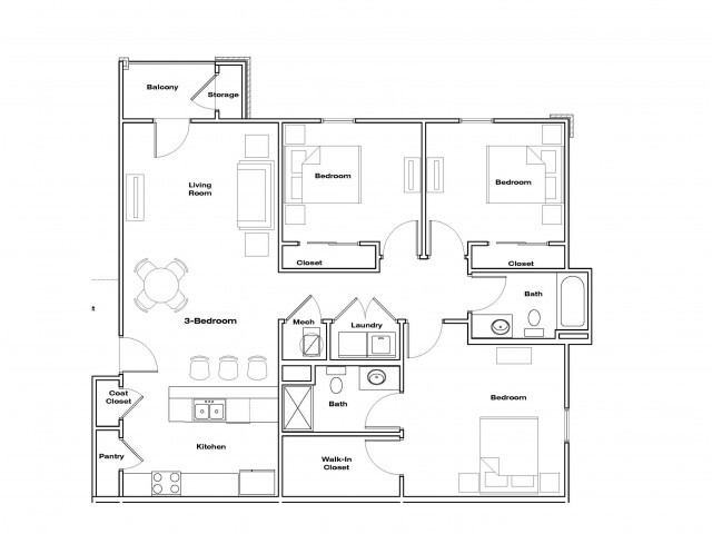 Apartment Model: 3 Bedroom, 2 BathroomFrom $1,3953 Bedroom, 2 Bath, 1328 sq ftAvailable Now![]()