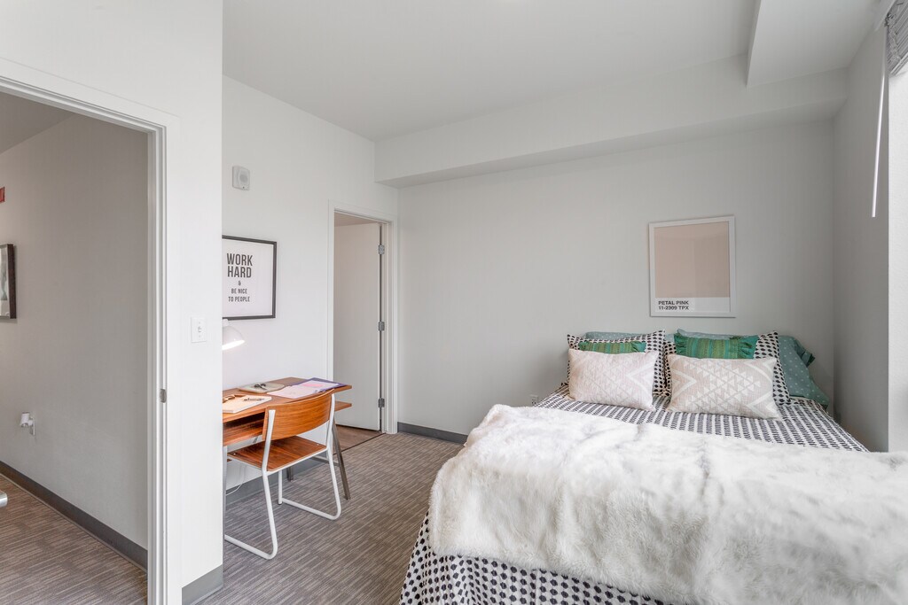 August 14, 2023Good: High Ceilings, Well maintained premises, Some utilities paid by rent, Decent workout room, Good rec. room, Your own bathroom, Unit laundry, Big sink, Decent living room, Close to Campus, Close to park, Friendly staff, Prompt maintenance, Full size beds, Good water pressure/temperature. Bad: Internet is bad, Interior finishings (paint splotches, shower spills onto floor, bed was stained, carpet was stained, carpet not stapled down completely), Parking spots for only half the residents ...(about 330 residents, like 150 parking spots), The parking does suck. If you don't have a spot (Which costs about 500 a year), you will need to park 5-10 minutes away. AND all the spots that they tell you is free parking (which I am grateful for) is only 48 hour parking, so you can get tickets for that (I only got one for my 2 years there, but I used my car regularly) Their personnel, especially the maintenance, is great. Every request I put in they addressed and had FIXED within 48 hours. Crazy good service. They interior was nothing like the showroom. The shower was especially bad, as there were marks on the shower walls, grout unpeeling everywhere, and the shower door would let water out. The rest of the room wasn't that bad, but there were stains here and there. On top of that, they charged me 75 to clean the bathroom when I left. I cleaned it 2x, and I get that I'm not a professional cleaner but I think I left it as good as I got it (my roomate had his mom help and still got charged lol, I don't know what their standard is) Hopefully the use that money to actually get some of those stains out. Their workout room is good for an apartment, only big thing missing is a rack. If they had that it would be complete, but honestly I loved working out there. Also its 24/7 which is nice. Internet was fine for web browsing. If you do any gaming, the wifi is actually bad. I got a screenshot of my ping going above 10,000 (yes you read that right). They've tried to fix it and it hasn't gotten better. They do have ethernet, but only one port for the entire 4 bedroom apartment. To end a good note, the proximity to campus is nice, and that cannot be overstated. When you are walking everyday, a quarter mile makes a very big difference. Summary: It was sold as a posh apartment for an average price, turned out to be a mostly good apartment with some unpleasant surprises for an average price with some fees. A good apartment, but not great.Property Manager Responded