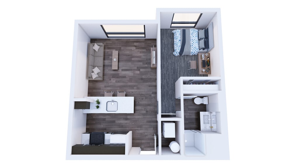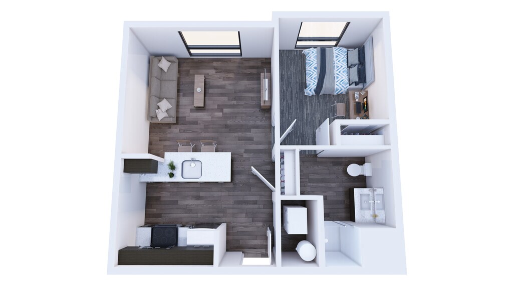 1x1 A - Floorplan 1 Apartment Unit: PrivateApartment Model: 1x1 A$1,3991 Bedroom, 1 Bath, up to 474 sq ftAvailable August 13, 20262 Bedrooms